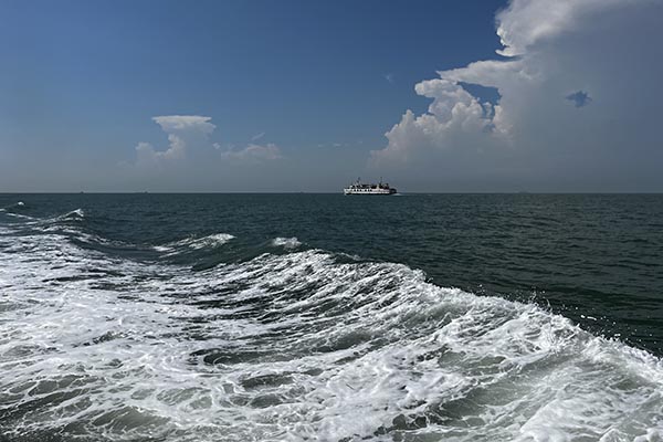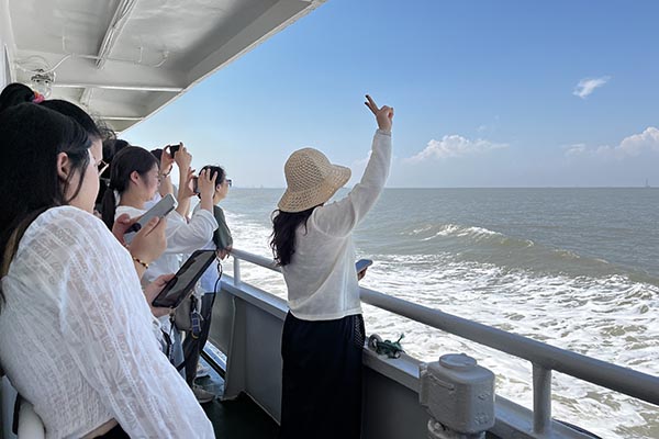 在清晨七點(diǎn)半的晨光中,滿載歡聲笑語(yǔ)的大巴,如同一艘陸地航船,載著我們駛向那片心心念念的蔚藍(lán)。一路上的談天說地,讓四個(gè)小時(shí)的車程變得輕快。當(dāng)咸腥的海風(fēng)透過車窗拂面而來,我們便知,目的地近了。沈家灣碼頭人頭攢動(dòng),我們的興奮之情也隨著海浪輕輕蕩漾。登上游輪,劈波斬浪,船艙內(nèi)是同事們不絕于耳的驚嘆與快門聲。那一刻,所有工作的疲憊仿佛都被海風(fēng)吹散,拋在了身后。